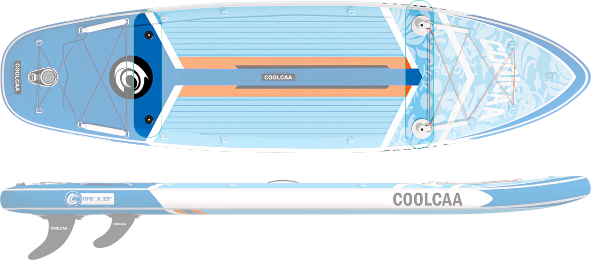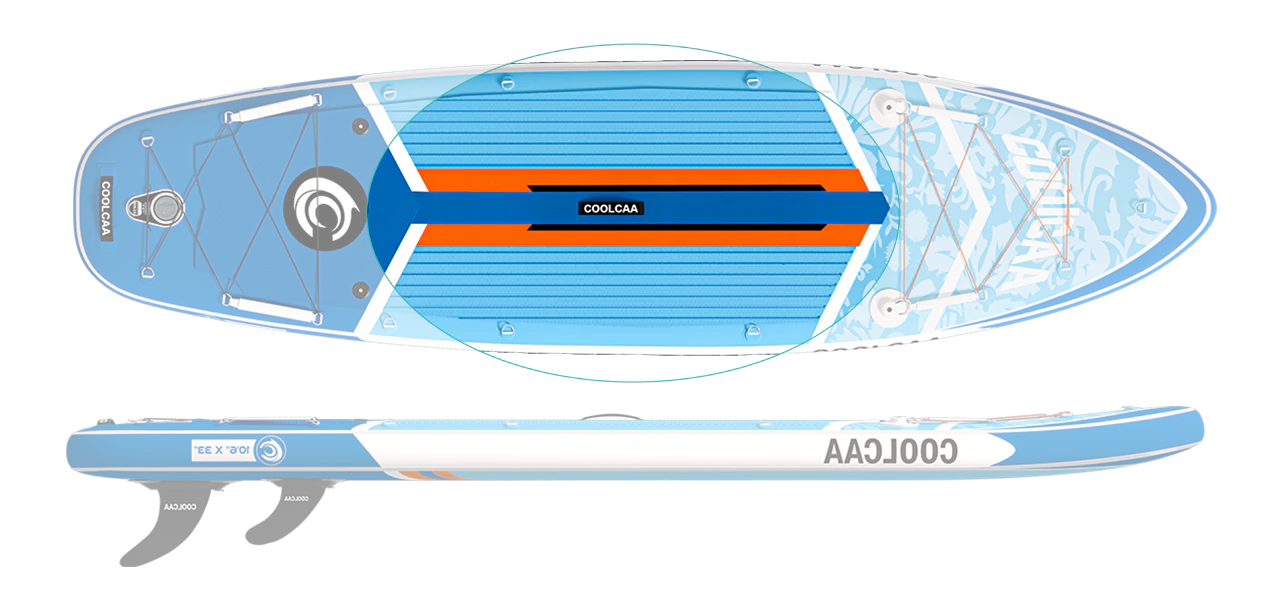 Das NEUE weich gebürstete EVA-Traktionspolster hat jetzt Rillen für zusätzliche Traktion und maximalen Komfort unter den Füßen. Es ist nicht scheuernd beim Kniepaddeln oder beim Entspannen auf dem Deck, sodass Sie sich bei jedem Paddeln auf eine reibungslose, komfortable Fahrt verlassen können.