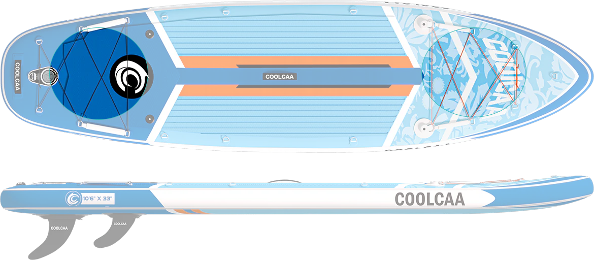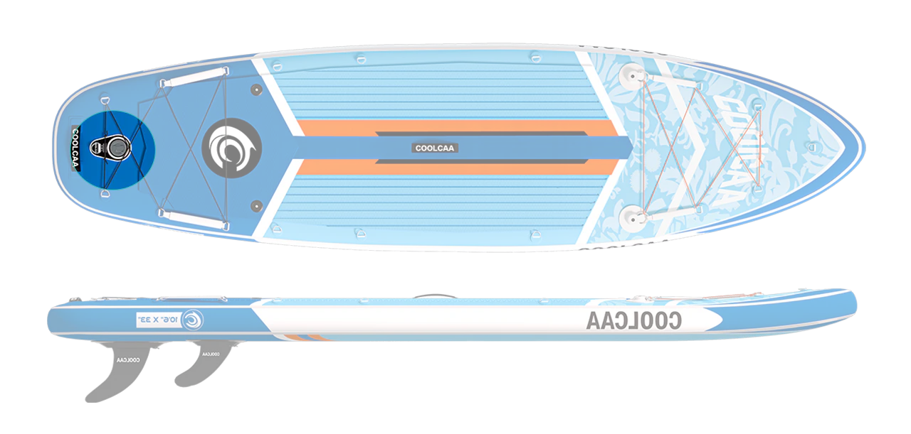 Die Coolcaa Electric Sup Pump, die exklusiv auf der Coolcaa-Website verkauft wird, wurde speziell entwickelt, um jedes Coolcaa-Board aufzublasen. Es wird an einen 12-V-Autostecker oder eine Schiffsbatterie angeschlossen und bläst das Board in etwa 10-12 Minuten auf 15 Psi auf.