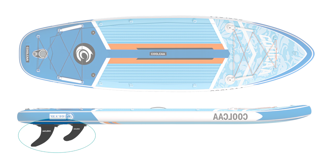 Aufblasbare Paddelbretter und Kajaks sind mit abnehmbaren Flossen ausgestattet, und die Heckflosse ermöglicht Ihnen mehr Manövrierfähigkeit beim Reiten auf Wind und Wellen.