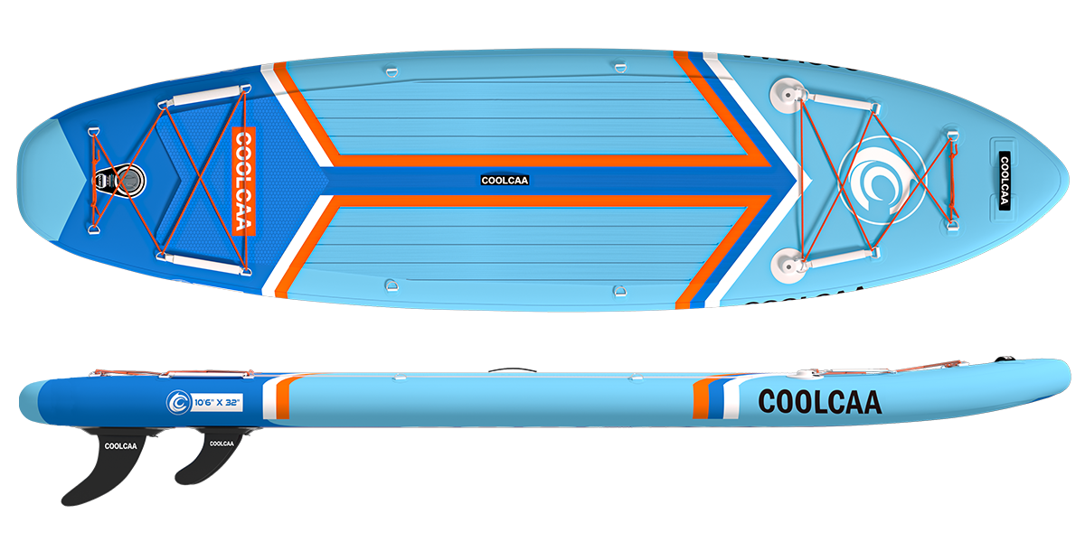 Die Coolcaa Electric Sup Pump, die exklusiv auf der Coolcaa-Website verkauft wird, wurde speziell entwickelt, um jedes Coolcaa-Board aufzublasen. Es wird an einen 12-V-Autostecker oder eine Schiffsbatterie angeschlossen und bläst das Board in etwa 10-12 Minuten auf 15 Psi auf.