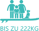 11’8"/ 356CM | 34”/86CM | 6”/15CM | 260 L | 9,8KG | 222KG |
