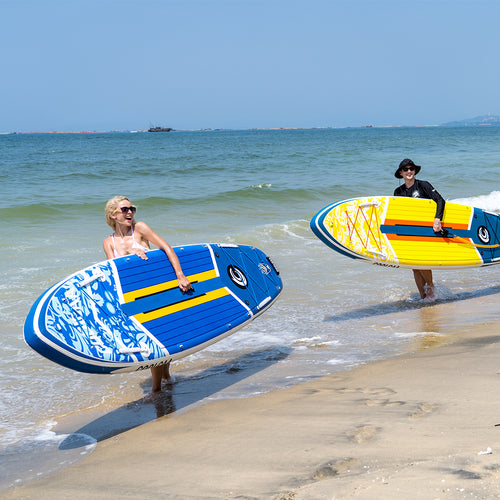 Die Paddleboards der Dolphin-Serie verfügen über mehr Funktionen und verbessertes Zubehör. Die Boards der Mermaid-Serie sind unsere günstigsten Boards und verfügen über alle Grundlagen, die Sie benötigen, um aufs Wasser zu kommen. Und der Dolphin ermöglicht mehrere Zubehöranwendungen und Upgrades für Vielseitigkeit und Design. Die Dolphin-Serie besteht aus drei Schichten PVC in Militärqualität, während die Mermaid aus doppeltem PVC besteht. Dies bedeutet, dass die Dolphin-Boards eine höhere Gewichtskapazität haben und eine bessere Leistung und Haltbarkeit bieten.