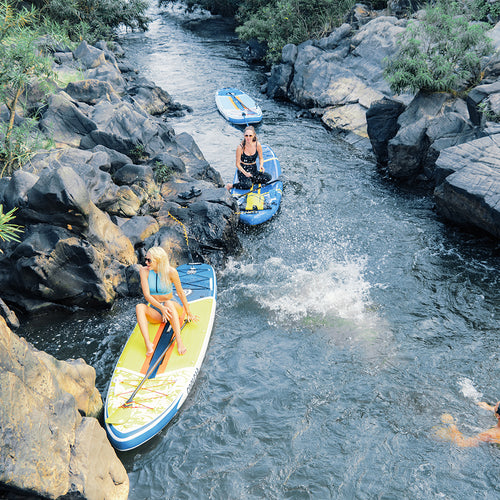 Die Gold Coast ist für Reisen konzipiert. Die 33”-Breite verleiht ihm hervorragende Stabilität und Manövrierfähigkeit, sodass er mit minimalem Widerstand durch das Wasser gleiten kann. Seine 3-lagige PVC-Konstruktion in Militärqualität macht ihn robust genug für Angeln, Camping, Schnorcheln, Reisen, Yoga und andere Aktivitäten.