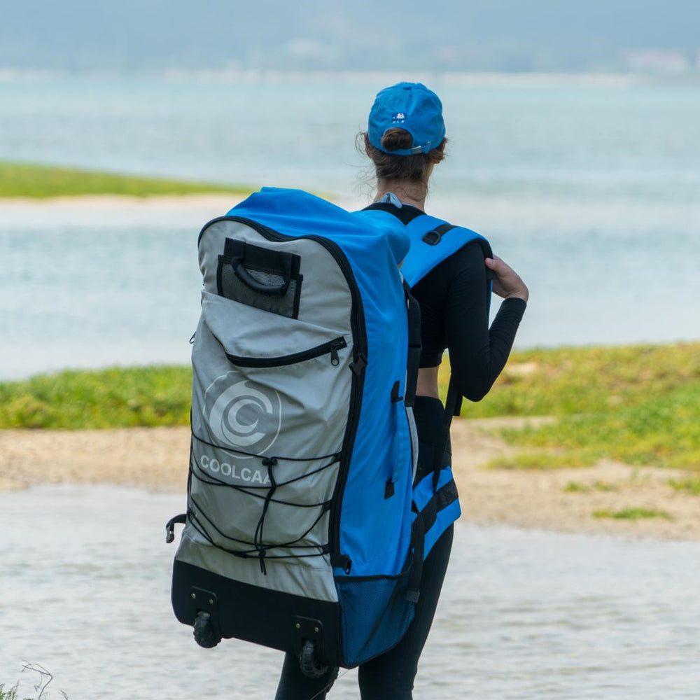 Die Coolcaa Electric Sup Pump, die exklusiv auf der Coolcaa-Website verkauft wird, wurde speziell entwickelt, um jedes Coolcaa-Board aufzublasen. Es wird an einen 12-V-Autostecker oder eine Schiffsbatterie angeschlossen und bläst das Board in etwa 10-12 Minuten auf 15 Psi auf.