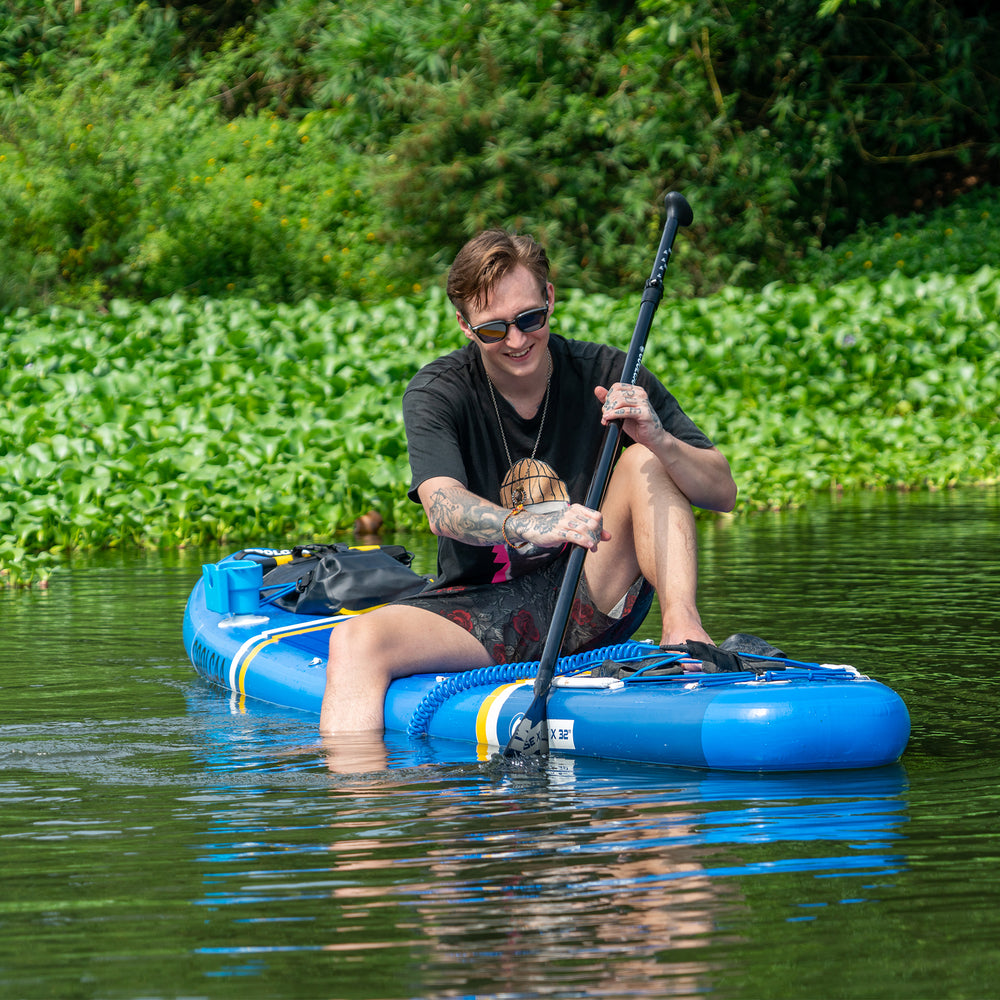 Der Navigator leistet bei allen Wasserbedingungen gute Dienste und ist perfekt für Enthusiasten, die an einer Vielzahl von Wasseraktivitäten teilnehmen möchten. Egal, ob Sie auf unberührten Seen fahren, Angelexpeditionen machen und Hunde und Kinder tragen oder dieses SUP in der milden Brandung am Strand genießen - dieses vielseitige Board bietet Stabilität, Sicherheit und Komfort. Ein breiter 32”-Körper und eine Gewichtskapazität von 300 Pfund sorgen für ein ungewöhnlich robustes SUP. Die vorderen und hinteren 12-Punkt-Bungee-Systeme ermöglichen es Ihnen, Ihre Ausrüstung schnell zu verwenden, und die einfach aufzublasende Konstruktion und das vielseitige Design machen dieses Board zu einem Anfängerboard Traum.