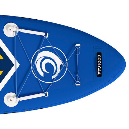 Die Coolcaa Electric Sup Pump, die exklusiv auf der Coolcaa-Website verkauft wird, wurde speziell entwickelt, um jedes Coolcaa-Board aufzublasen. Es wird an einen 12-V-Autostecker oder eine Schiffsbatterie angeschlossen und bläst das Board in etwa 10-12 Minuten auf 15 Psi auf.