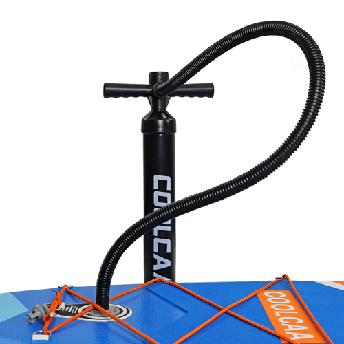 Die Coolcaa Dual Chamber Triple Action Handpumpe ist in der Lage, das Board in ca. 5-7 Minuten schnell und gleichmäßig aufzublasen. - Einige Fahrer gaben nur 3,5 Minuten an, während andere bis zu 10 Minuten angaben. Die Aufblaszeit hängt von der Geschwindigkeit ab, die Sie beim Pumpen beibehalten. Die im Lieferumfang der Coolcaa-Platte enthaltene Zweikammer-Handpumpe reduziert die Pumpzeit im Vergleich zu vielen Einkammerpumpen um mindestens 100 %.